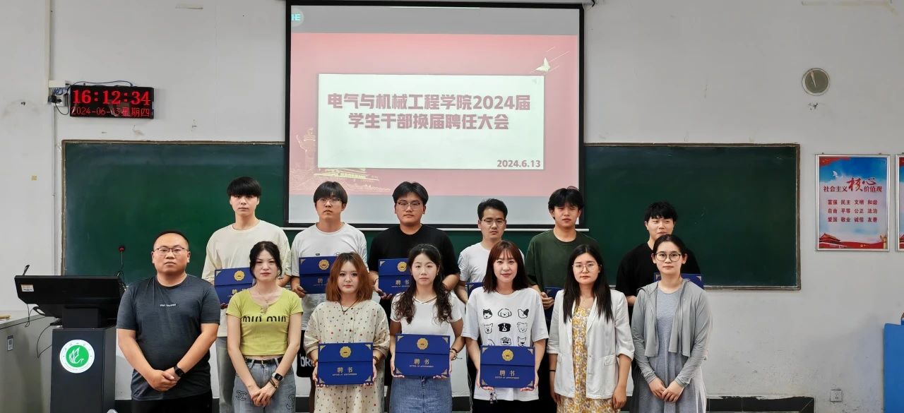为进一步加强对员工干部的组织和管理,培养和壮老员工干部队伍,公司于2024年6月13日下午在3106教室召开2024届员工干部换届聘任大会暨员工干部培训第一讲。院团委书记李杰,副书记周雨,全体辅导员以及2023届和2024届主席团成员、各级员工干部悉数出席。在庄严的国歌声中,公司2024届员工干部换届聘任大会正式拉开序幕。