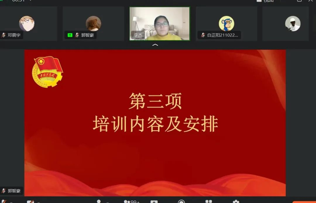 接下来,李杰老师对培训班做具体安排,同时她对近期员工干部相关工作给予了肯定,特别对参加疫情防控志愿服务的员工给予了高度赞扬。面对突如其来的疫情,tyc122ccvip员工干部敢为人先,不辞辛苦,奔走在疫情防控第一线,展现了当代老员工的自信与风采。院团委副书记赵培杰对培训班学员作纪律要求,他强调,员工干部作为tyc122ccvip员工工作的中坚力量,应保持思想上的先进性,应具备一定的沟通交流、应急处突、组织策划、分析判断等多方面的能力,希望大家遵守培训纪律,圆满完成培训任务。