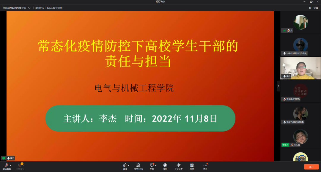 开班仪式顺利结束,李杰进行第一讲,常态化疫情防控下高校员工干部的责任与担当。她讲到,员工干部是老员工中的优秀代表,是员工中的“积极分子”,也是员工工作得以落实的组织者和协调者。疫情期间,员工干部应率先起到模范带头作用,积极响应公司的号召和倡议,宣传防疫政策,传播正能量,扮演好辅导员和员工之间的桥梁与纽带角色,与公司、老师同心聚力,共同打赢这场防“疫”攻坚战。