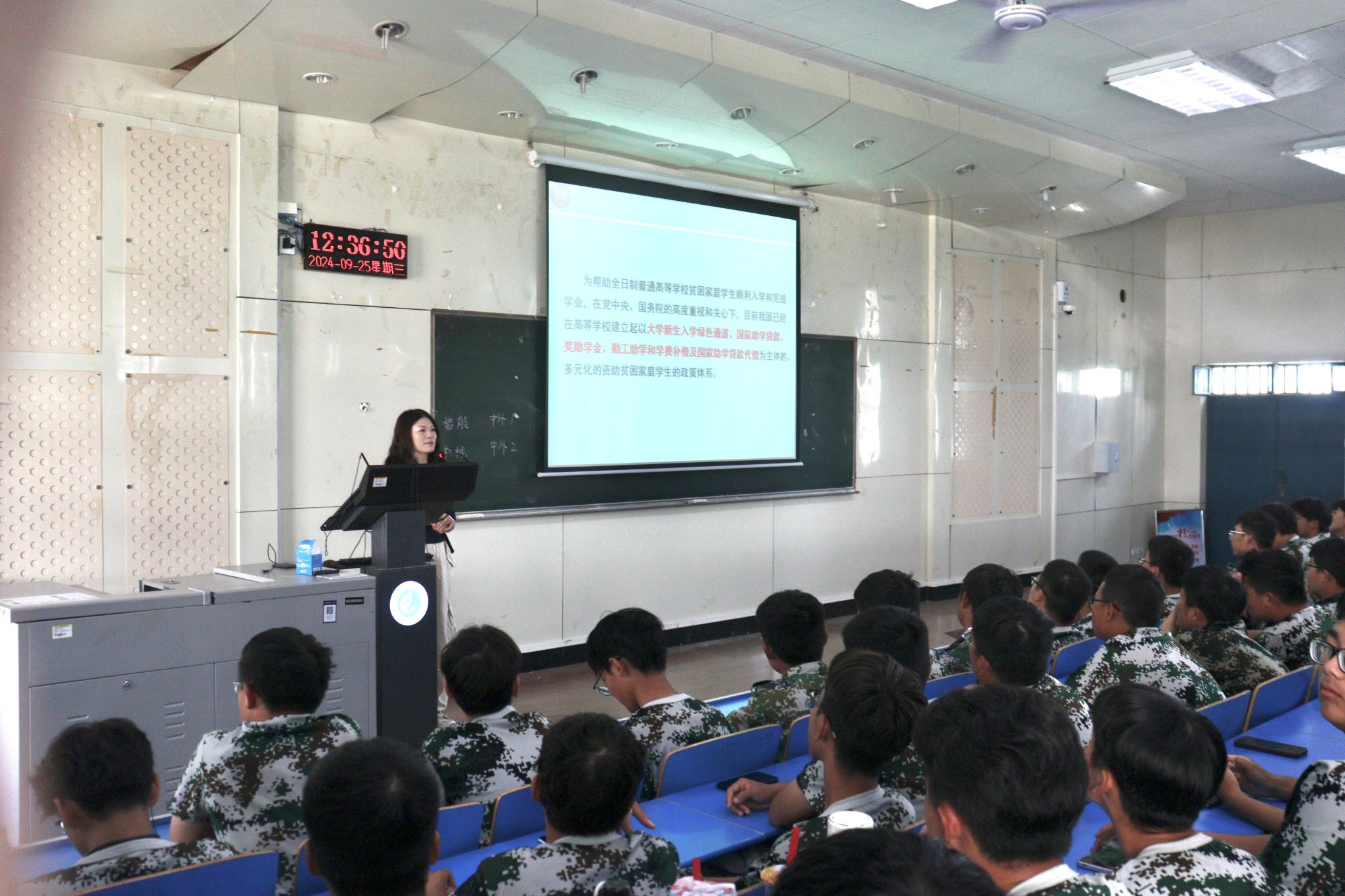 2024年9月25日,为了深入贯彻国家资助政策,确保每位学子都能无惧经济压力,安心求学,公司在4106教室成功举办了一场资助政策宣讲活动。此次活动由2022级辅导员茹菲菲老师主持。