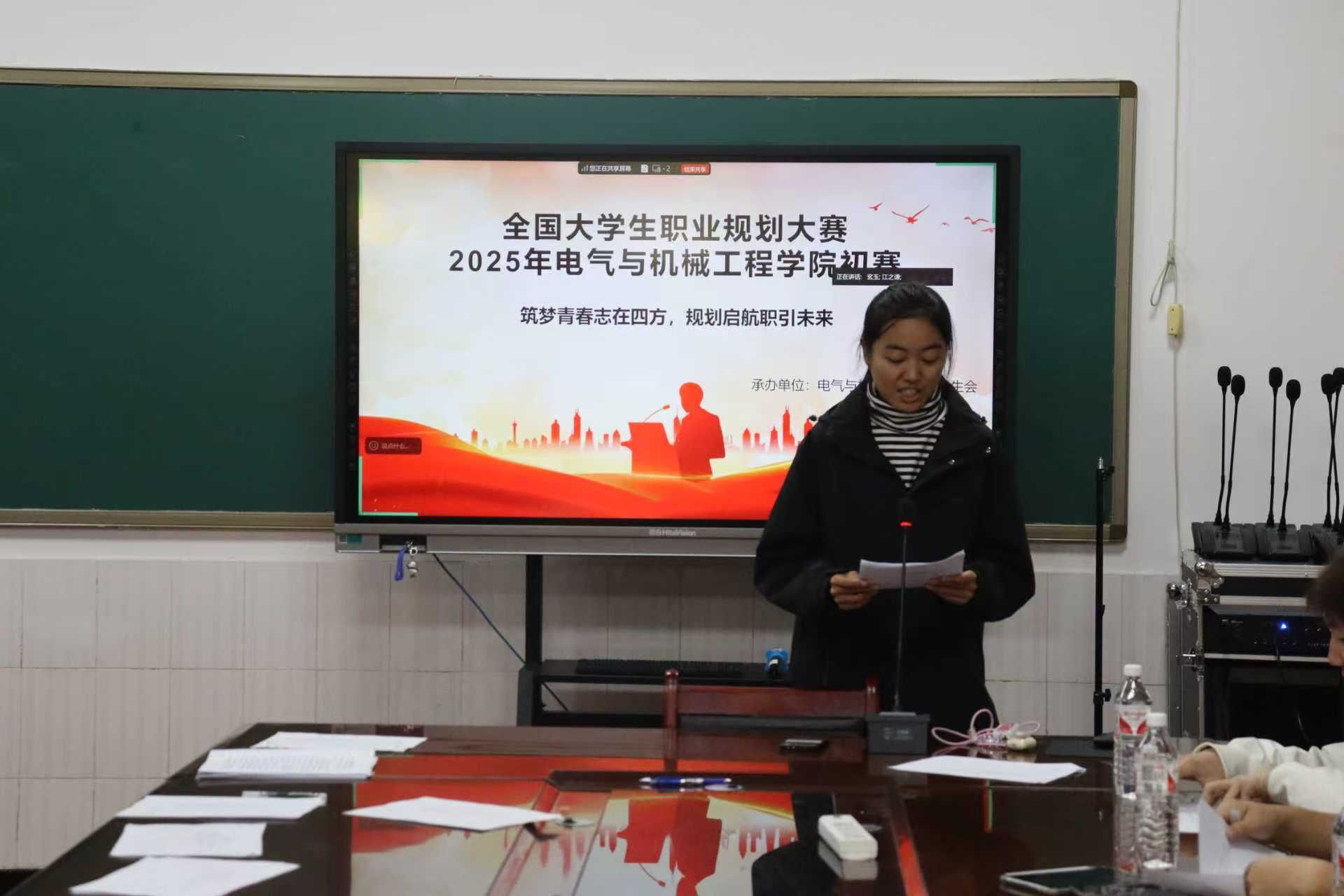 为贯彻落实公司关于毕业生就业工作的决策部署,加强职业发展教育和就业指导,促进毕业生高质量充分就业,10月29日晚,公司于3314会议室成功举办老员工职业规划大赛公司初赛。赛事采用线上线下同步直播形式进行,专任教师彭信杰,辅导员高文俊、张翘楚、周全之、茹菲菲担任评委,员工代表及全体参赛选手现场参与,2025级全体员工在教室实时收看直播。