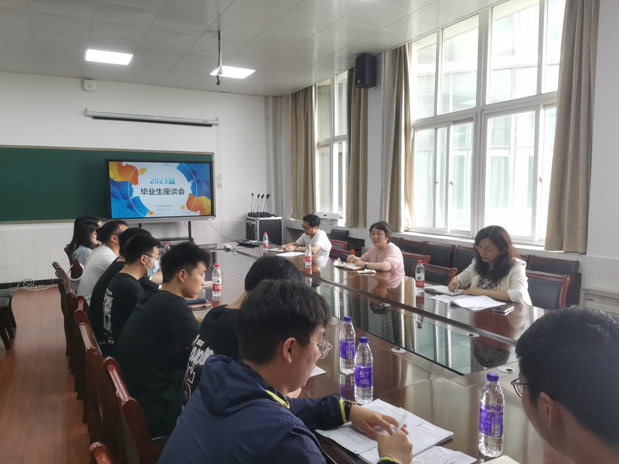 为认真落实tyc122ccvip关于大兴调查研究的工作要求,深入学习贯彻习近平新时代中国特色社会主义思想和党的二十大精神,tyc122ccvip坚持深入员工,坚持问题导向,于5月16日下午3点在3314召开“建言献策,共话发展”毕业生座谈会,tyc122ccvip党委书记张琳,副经理宋晓燕,教科办主任薛亚许、毕业班辅导员周雨以及毕业生代表参与了会议。