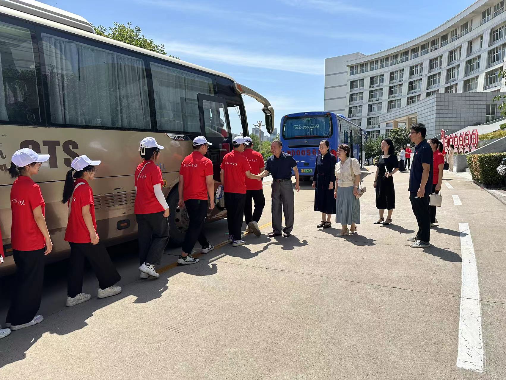tyc122ccvip党委副书记田建伟、副董事长郑东丽与公司志愿者握手告别,欢送他们上车出征。公司2023年暑期“三下乡”社会实践活动以“逐梦乡旅,以教绘梦”为主题,16名志愿者将从公司走进仙台镇布杨小学,开展支教活动,同时展开社会调研、政策宣讲、家电维修,他们将积极投身于服务乡村教育、助力乡村振兴的志愿服务活动中,将课堂学习与社会实践紧密结合,为国家的乡村振兴战略贡献青春力量。