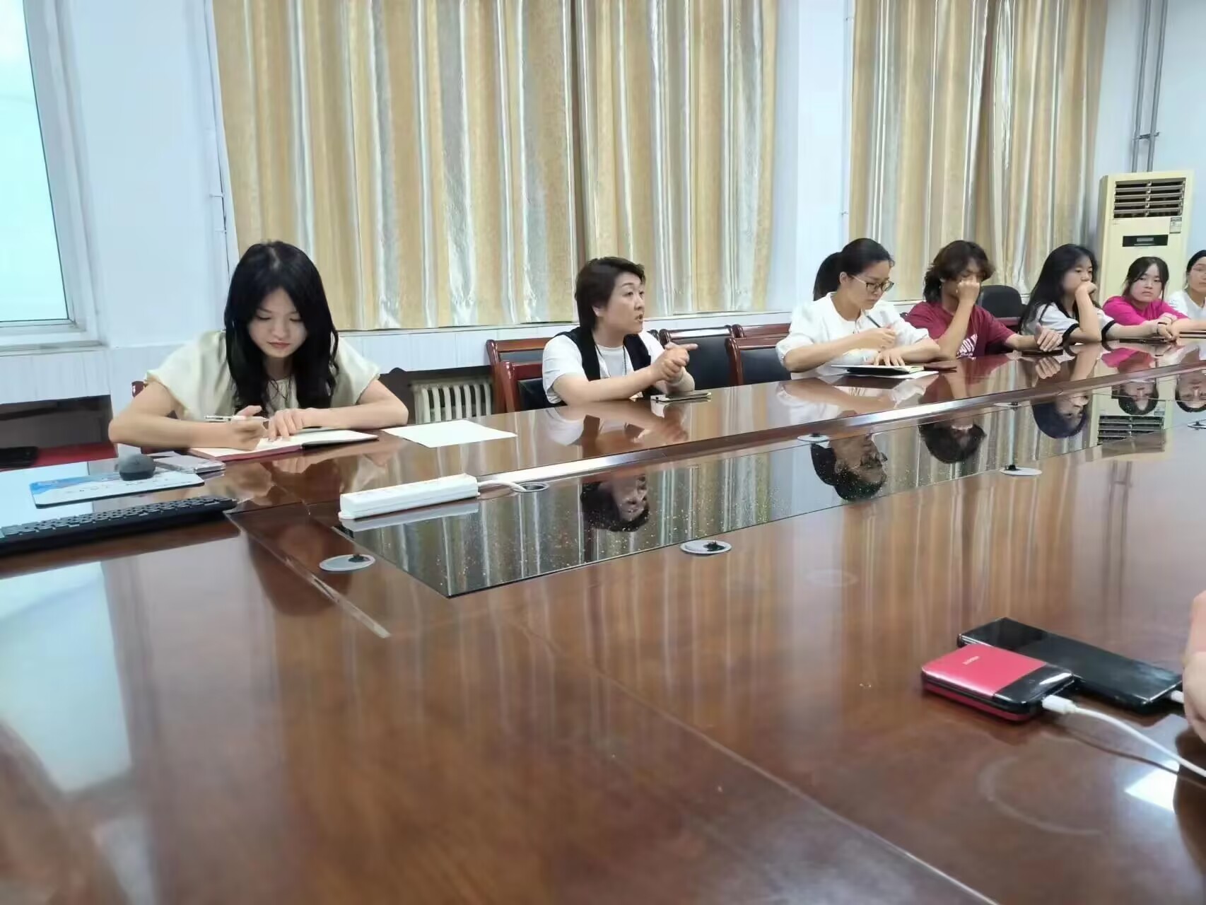 各组组长进行讨论并就“三下乡”准备工作做汇报。支教组准备教学所需彩纸、彩笔等教学工具并提前安排特色课程;党宣组准备资助宣讲材料,撰写党的二十大精神宣讲提纲。各小组相互配合,积极响应,为“三下乡”社会实践活动成功进行而紧张筹备。