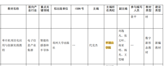 根据公示文件,公司共有四项申报教材获批省规划教材,公司教师代克杰申报的《单片机项目化应用与创新实践教程》、杜豪杰等教师申报的《电工技术基础与实践教程》两本教材获批省规划教材。