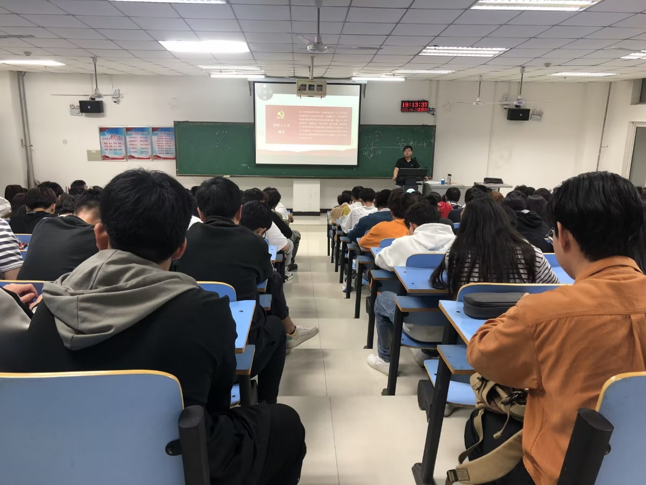 为深入学习宣传贯彻党的二十大精神,把青年学子的思想和行动统一到党的二十大精神上来,更好的团结引领青年员工永远跟党走,奋进新征程,4月20日,马克思主义公司教师陈洋为tyc122ccvip员工进行党的二十大精神宣讲活动,本次宣讲的主题是《建设社会主义现代化国家的政治宣言和行动纲领》,机械电子工程(中外合作办学)专业200余员工参加了宣讲会。