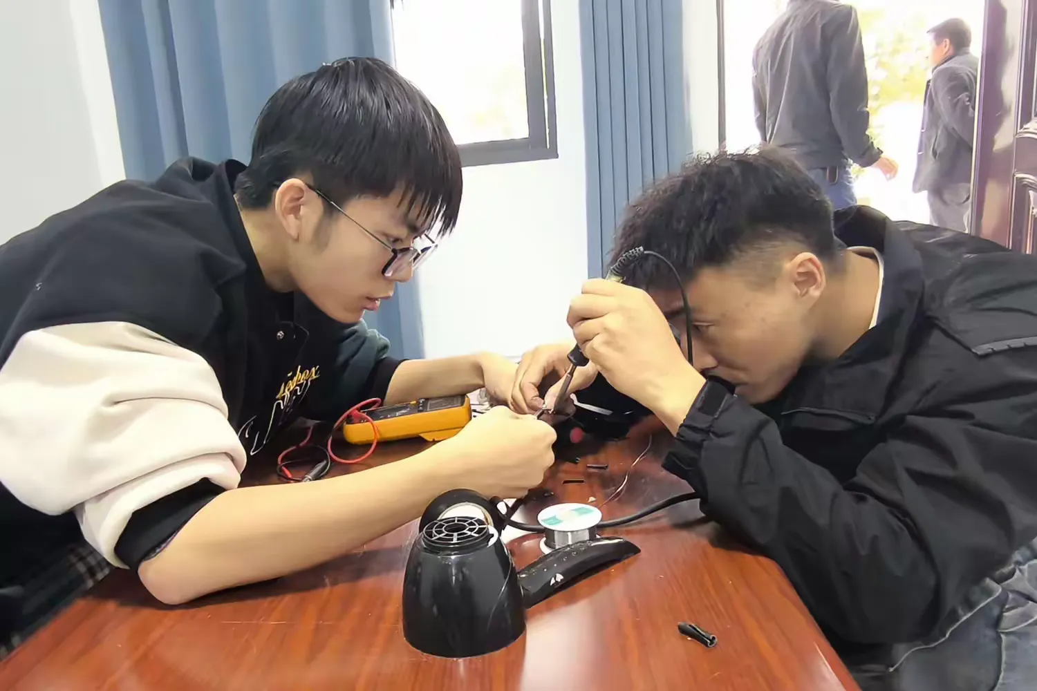 在驻村干部的带领下,师生党员分为三个小组,深入有维修需求的帮扶户家中,对问题家电进行全面检查,逐一记录故障情况,利用专业所学对故障情况进行维修。在维修过程中,不仅剖析和解决当前问题,还详细向村民们讲解家电的使用规范和保养常识,提升村民对家电的日常保养意识和维修能力,严防因使用不当造成的涉电安全事故发生,助力农村用电安全。师生党员凭借丰富的维修经验和高超的专业水平,成功修理了多个故障家电,并对无法维修的家电进行了报废提醒,大家热情的服务和精湛的技术受到了广大村民的高度赞扬。在深入帮扶的过程中,师生党员们还通过发放宣传页和现场演示的方式对村民进行防电信网络诈骗宣传。