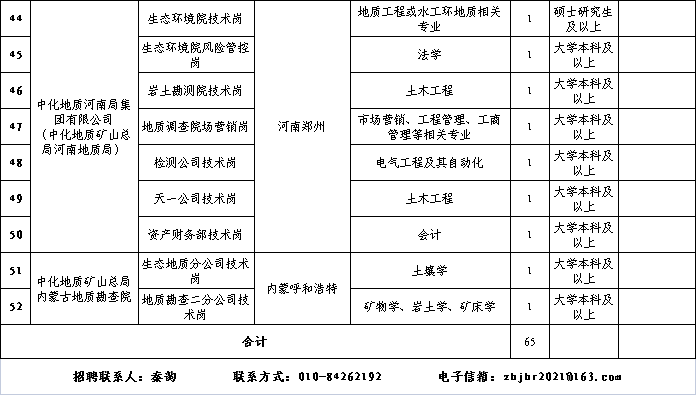 2.报名方式:有意应聘者请将《中国煤炭地质总局高校毕业生应聘简历》(附件1),自荐书,公司就业推荐表(扫描件,公司尚未下发可省略),在校期间学习成绩单(扫描件),各类获奖证书、资格证书(扫描件)及其他应聘材料(研究生学历人员请提供本科期间的证书和在校期间学习成绩单)以压缩文件的形式发送至《中国煤炭地质总局2023年度高校毕业生招聘计划》(附件2)中具体用人单位的电子信箱,文件名称请务必使用“具体用人单位+需求部门及岗位+公司+专业+学历+姓名”的格式。