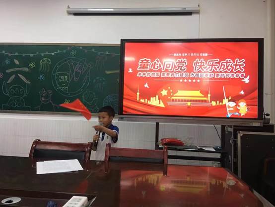 “党旗下革命故事”环节,以红色革命故事《小萝卜头》为背景,让孩子亲身感受到红色年代小萝卜头的奋发、坚强和努力,使他们懂得这个机会多么宝贵,再苦再难,也不放弃学习,不放弃希,奋发图强;“我为中国共产党庆生”环节孩子们举起手中的国旗,共唱《我爱你祖国》,共同庆祝党的生日;“新时代少年英姿”环节,孩子们通过一个个才艺表达,展示了新时代青少年的风采英姿。