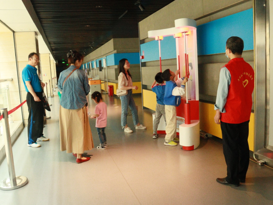 在平顶山市科技馆内,家长和孩子们在讲解员的引导下依次参观了生命科学、力与运动、声光体验、数理探秘、虚拟现实、数字生活等主题展区。孩子们通过场馆的参观和体验,逐步认识了生命奥秘、人类智慧,并通过与展区部分设施的互动,在娱乐中体验感受现代科技的魅力,科学与创造的种子在参观过程中慢慢植入他们的心间。